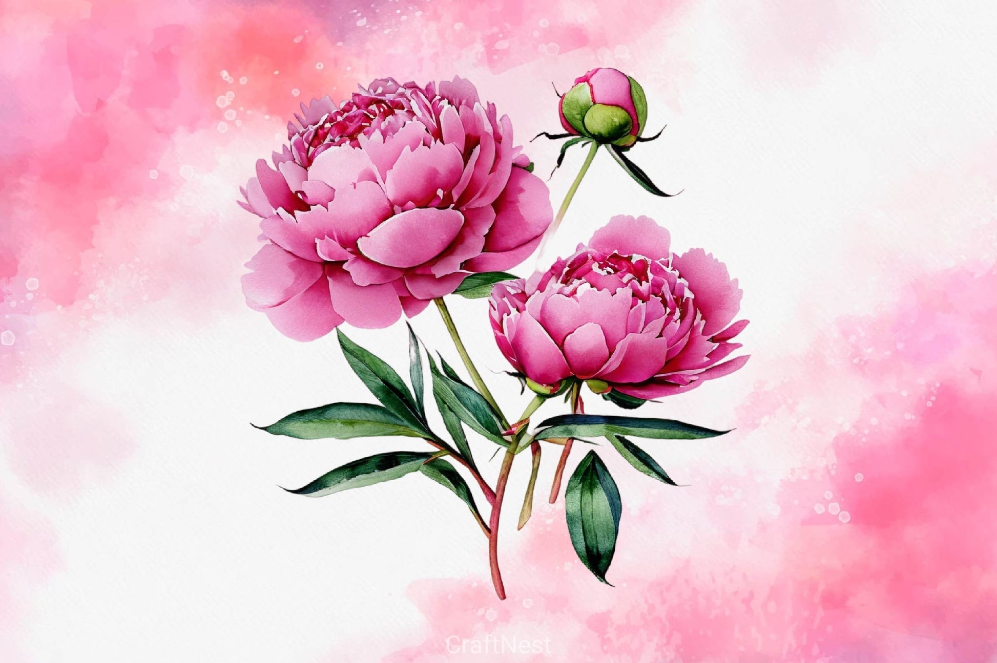 Beautiful pink peony flower sets perfect for romantic garden projects.