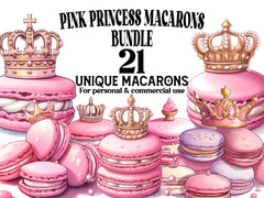 Channel your inner royalty with our Pink Princess Macarons clip art. These regal digital illustrations showcase macarons fit for a princess, adorned with pink frosting and sparkling decorations, perfect for adding a royal touch to your designs.