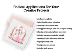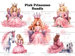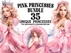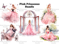 Experience the elegance of royalty with our Pink Princesses clip art. These regal digital illustrations portray princesses in shades of pink, surrounded by roses, jewels, and enchanting castles, perfect for adding a touch of feminine grace and fairy tale charm to your creative projects, from invitations to scrapbook pages.