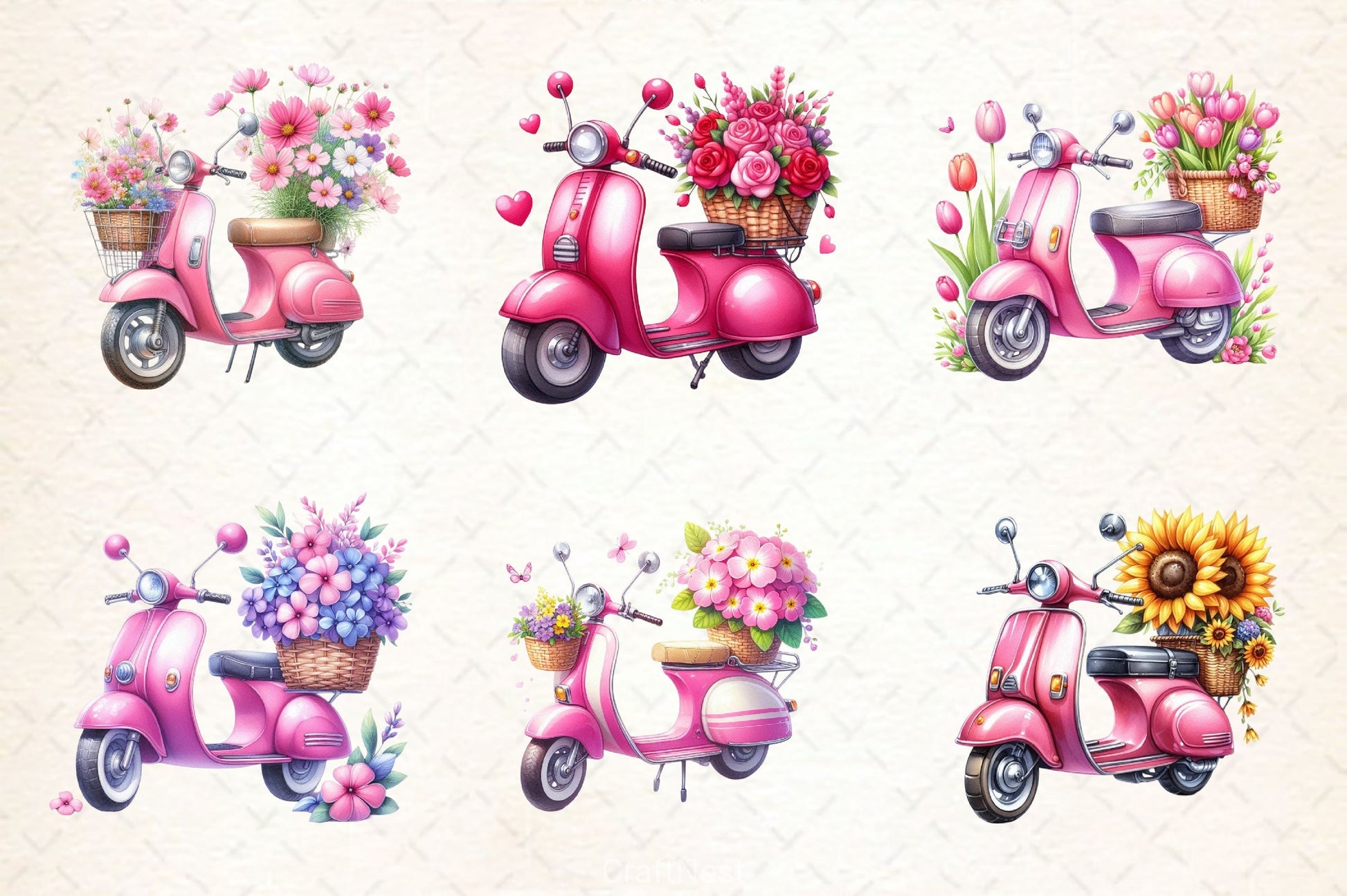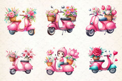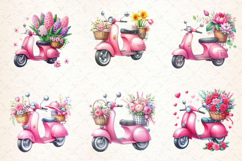 Pink scooters decorated with flowers for feminine vehicle projects.