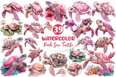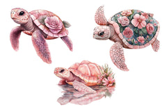 Adorable pink sea turtles perfect for feminine ocean projects.