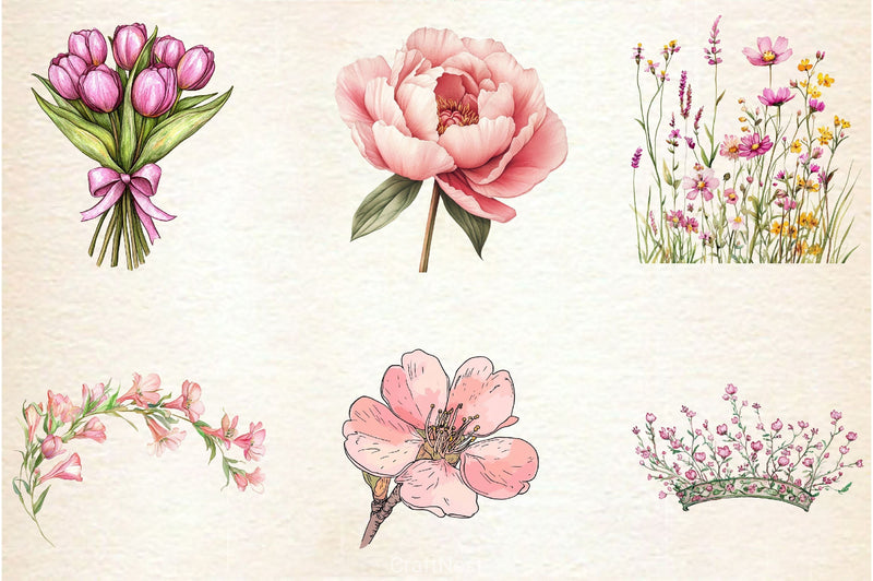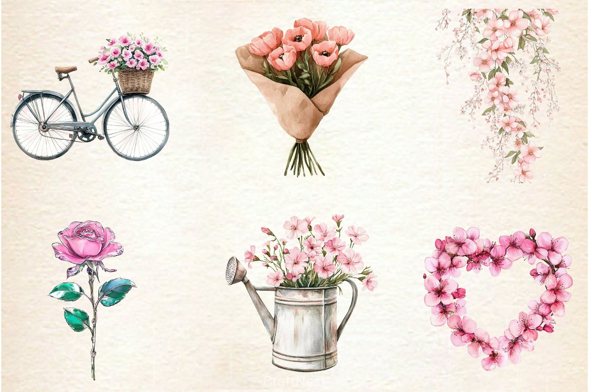Soft pink spring elements perfect for feminine seasonal celebration projects.