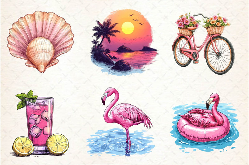 Blush with this Pink Summer Clipart Bundle, featuring feminine seasonal designs, perfect for girly summer crafts.