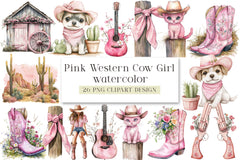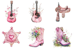 Pink Western Cowgirl Clipart Bundle