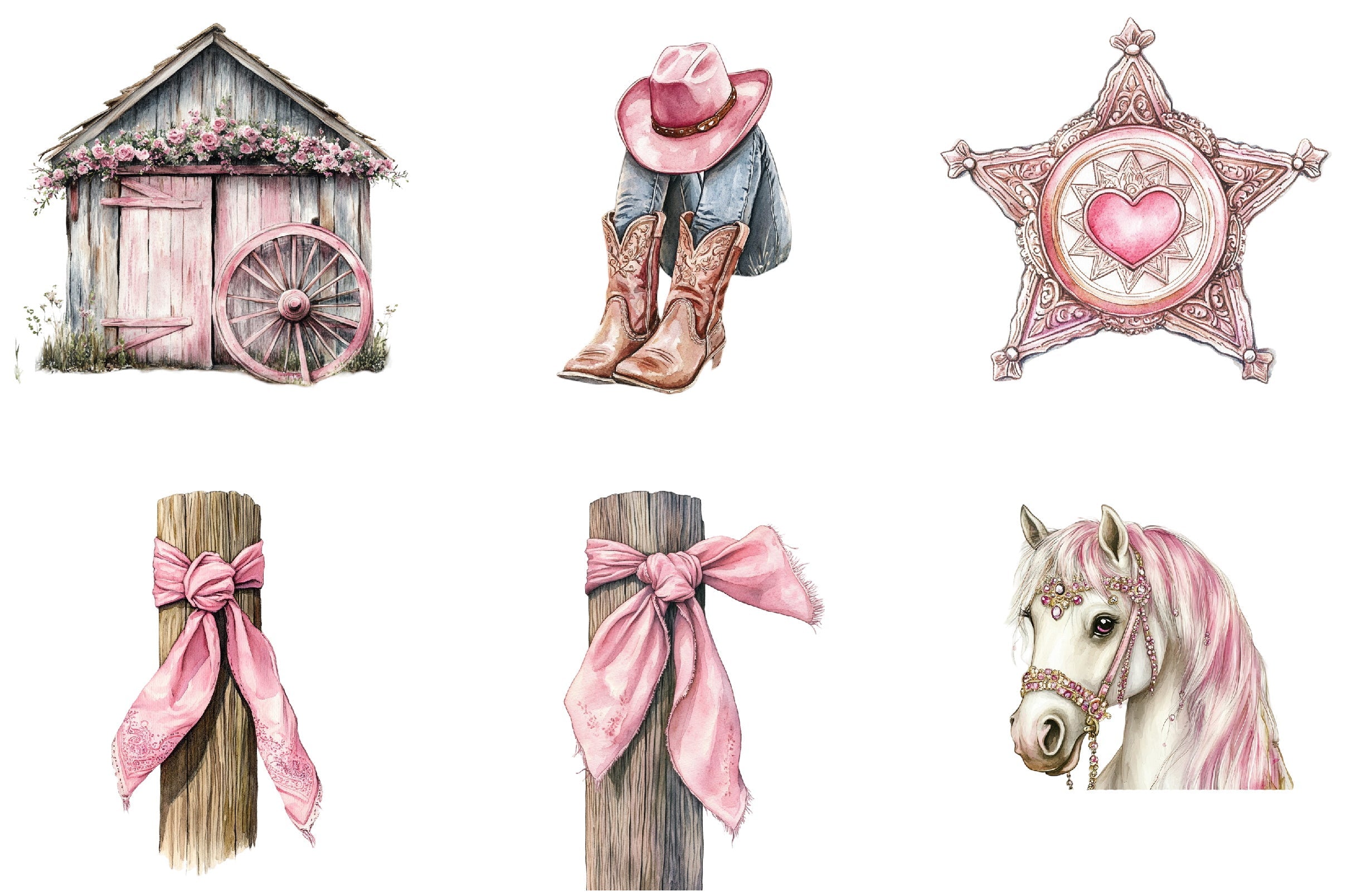 Unleash your creativity with our Pink Western Cowgirl Clipart Bundle, featuring charming cowgirl designs perfect for rustic-themed projects. Ideal for scrapbooking, invitations, and DIY crafts, this collection brings a touch of the Wild West to your creations. Explore endless possibilities with high-quality, versatile clipart that adds a playful, feminine flair to any design. Perfect for party decor, personalized gifts, and more, this bundle is a must-have for cowgirl enthusiasts and creative minds alike.