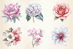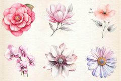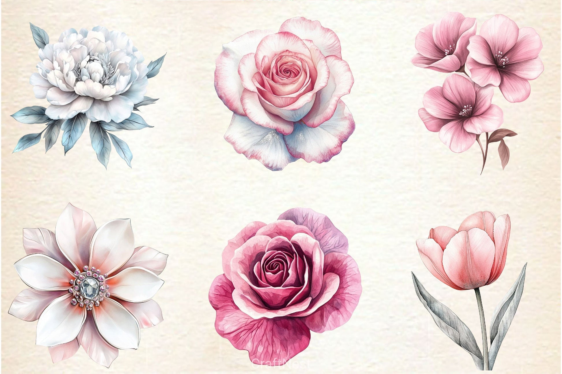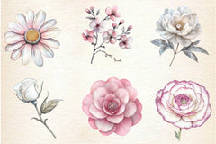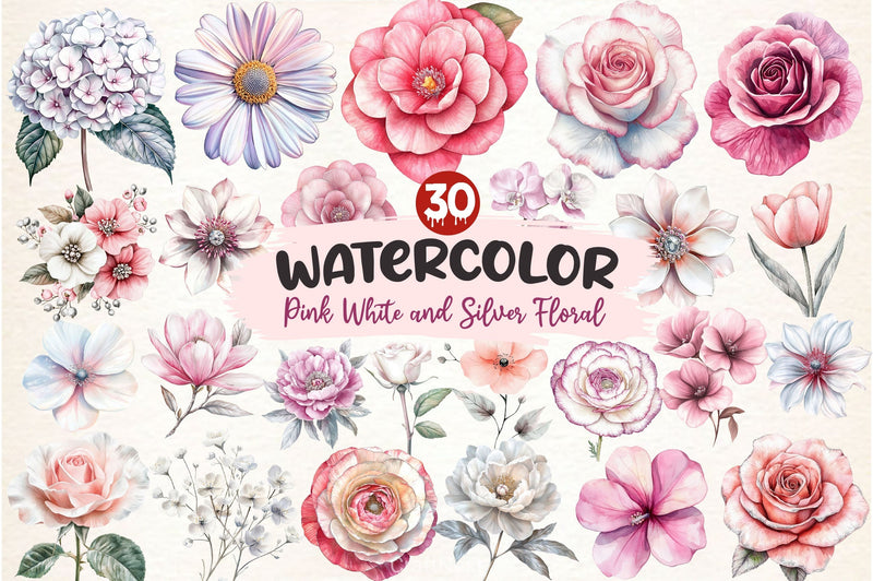 Pink White And Silver Floral Clipart Bundle