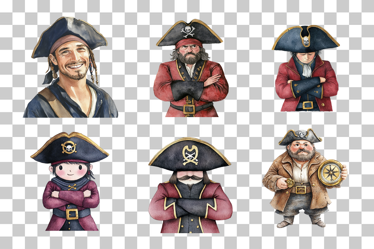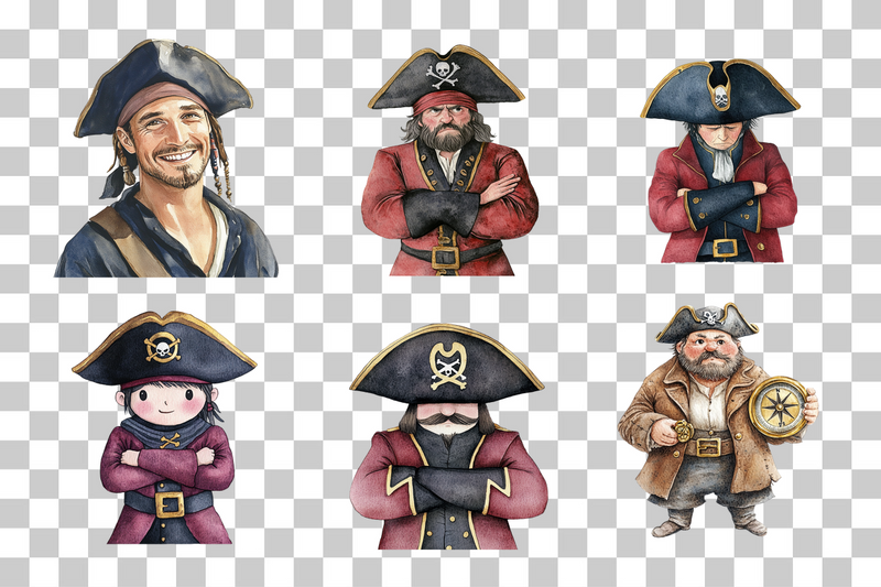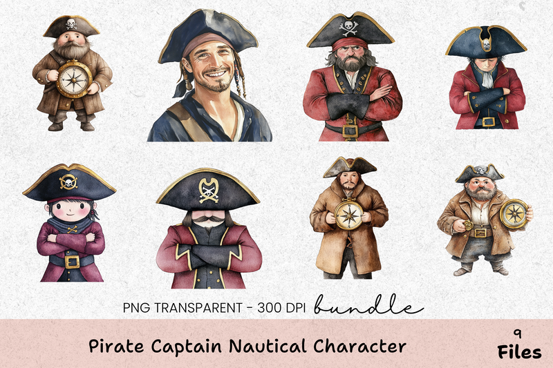 Set sail on a creative adventure with our Pirate Captain Nautical Character Clipart Bundle. Perfect for crafting captivating sea-themed projects, this bundle features a variety of charming pirate captain designs. Ideal for scrapbooking, party invitations, and more, these high-quality cliparts bring a touch of the high seas to your creative endeavors. Unleash your imagination and explore endless possibilities with this versatile collection, perfect for nautical-themed crafts and decorations.