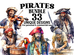 Set sail for adventure on the high seas with our Pirates clip art. These swashbuckling digital illustrations depict pirates, ships, treasure maps, and more, capturing the thrill and excitement of the golden age of piracy, perfect for adding a touch of nautical flair and daring escapades to your creative projects.