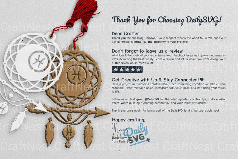 Capture celestial charm with the Pisces Dream Catcher Set SVG Bundle, featuring intricate dream catcher designs perfect for mystical home decor and creative projects.