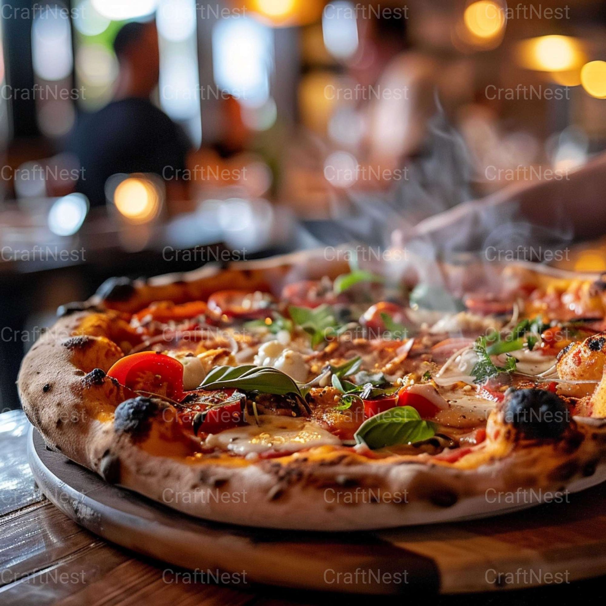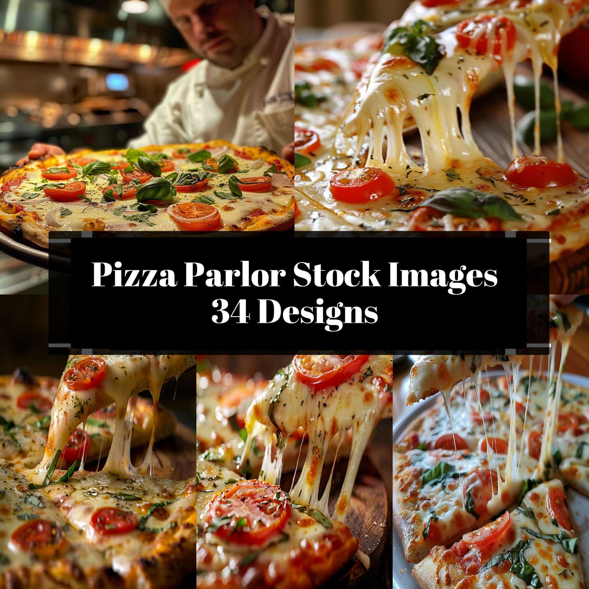 Slice into this Pizza Parlor Stock Images set, featuring cheesy pizza scenes, perfect for pizzeria marketing.