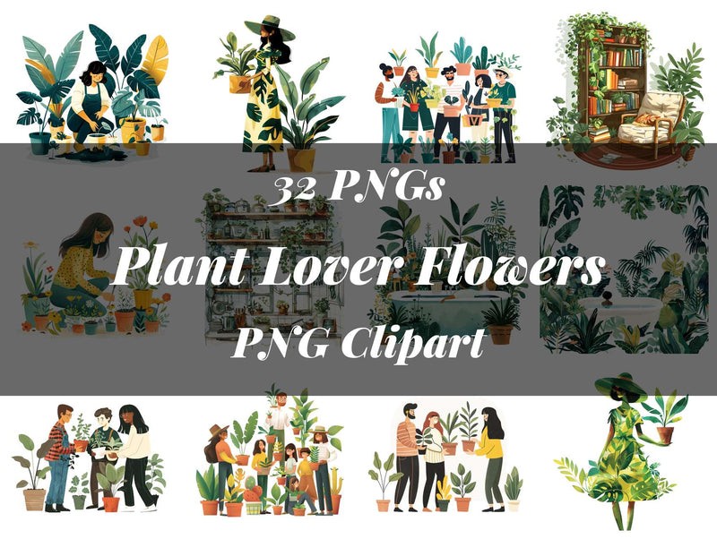 Grow your love with this Plant Lover Clipart set, featuring plant-themed designs, perfect for green-thumb projects.