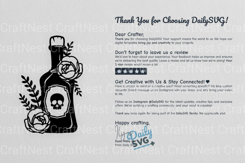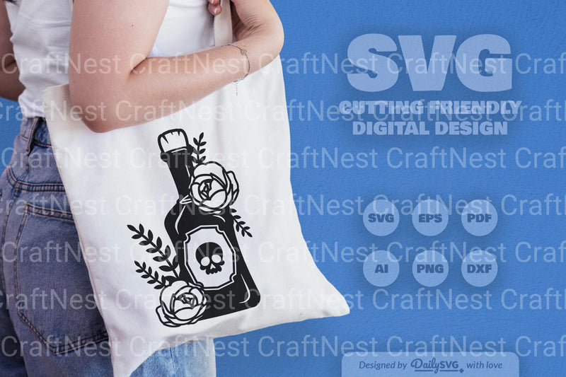 Enchant your Halloween crafts with the Poison Bottle with Roses Halloween SVG Bundle. Perfect for creating spooky decorations, this bundle features intricate designs that add a touch of eerie elegance to any project.