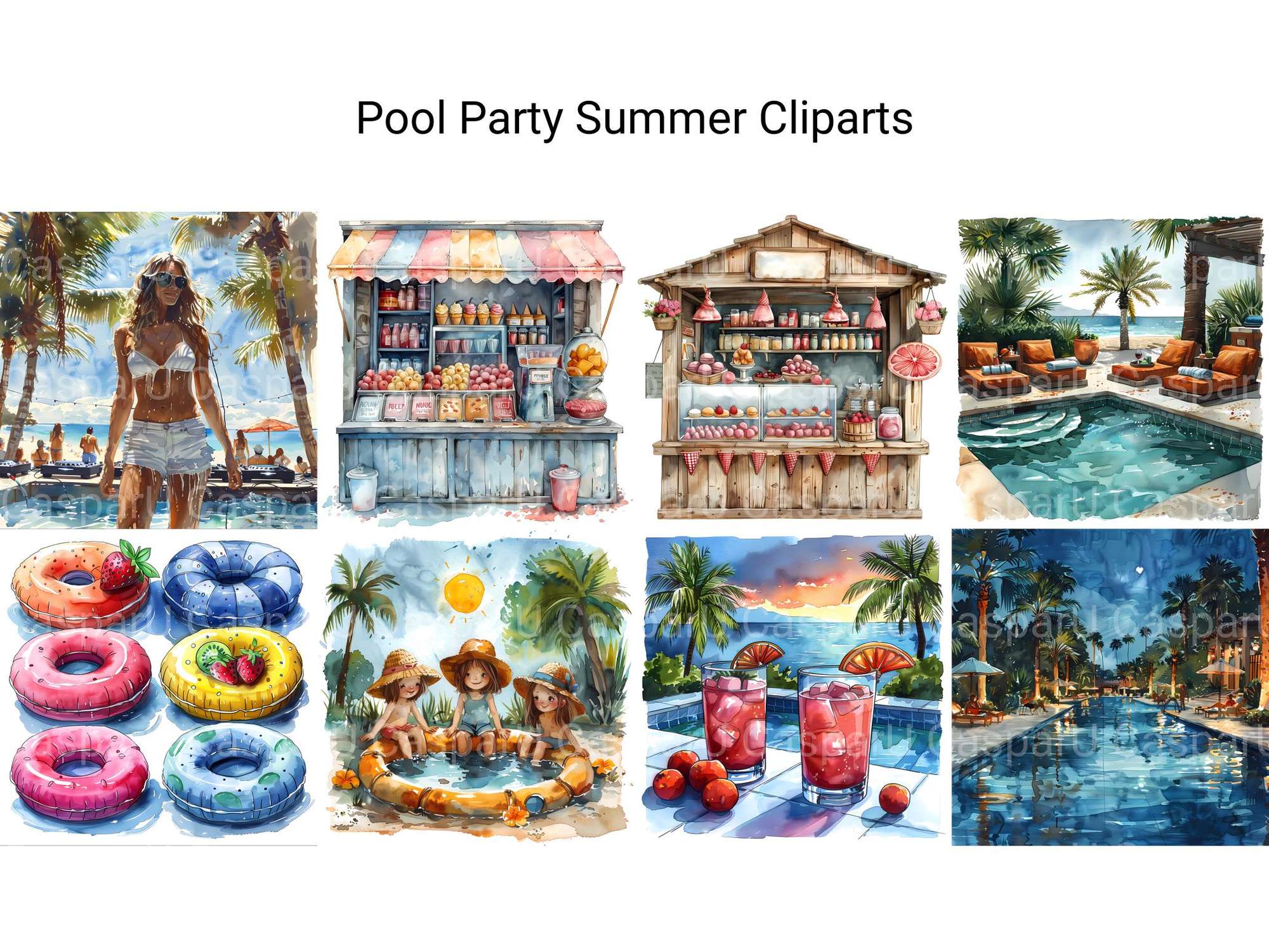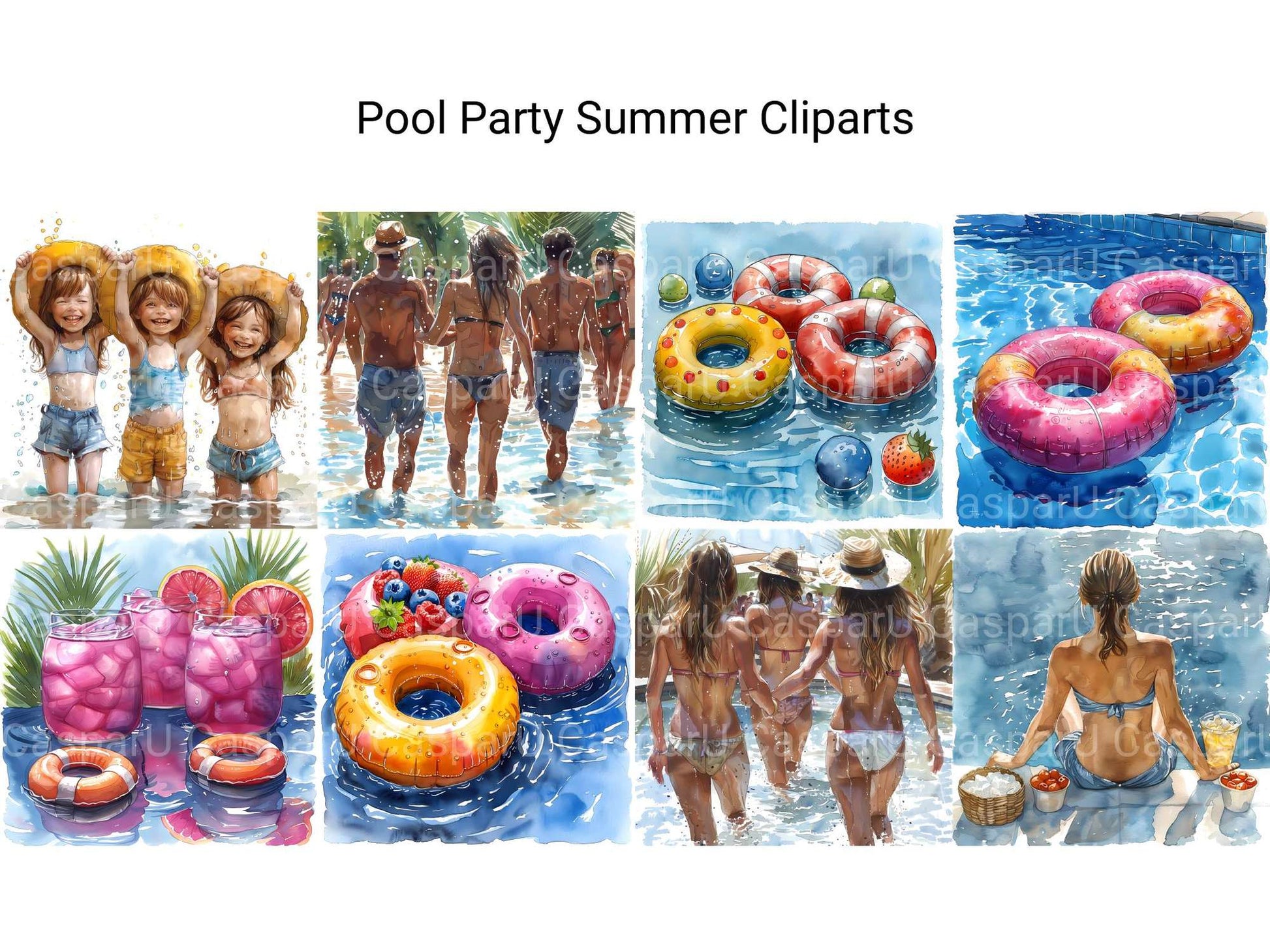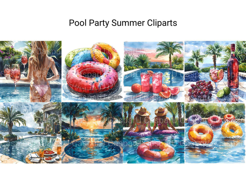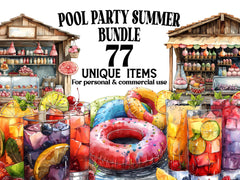Dive into the fun with our Pool Party Summer clipart, featuring lively illustrations of pool floats, swimwear, and refreshing drinks. These designs capture the excitement and joy of a summer pool party, perfect for adding a splash of fun to your projects.