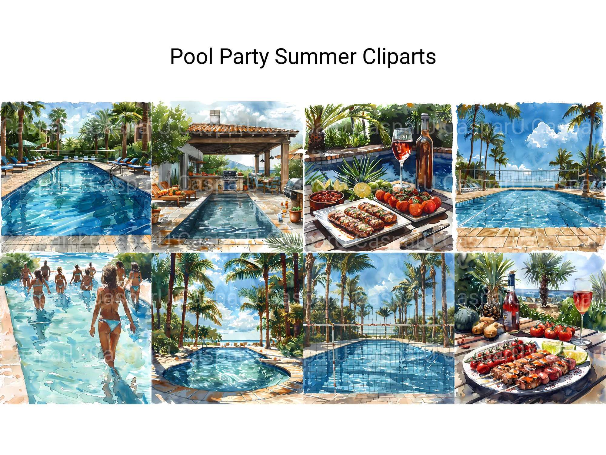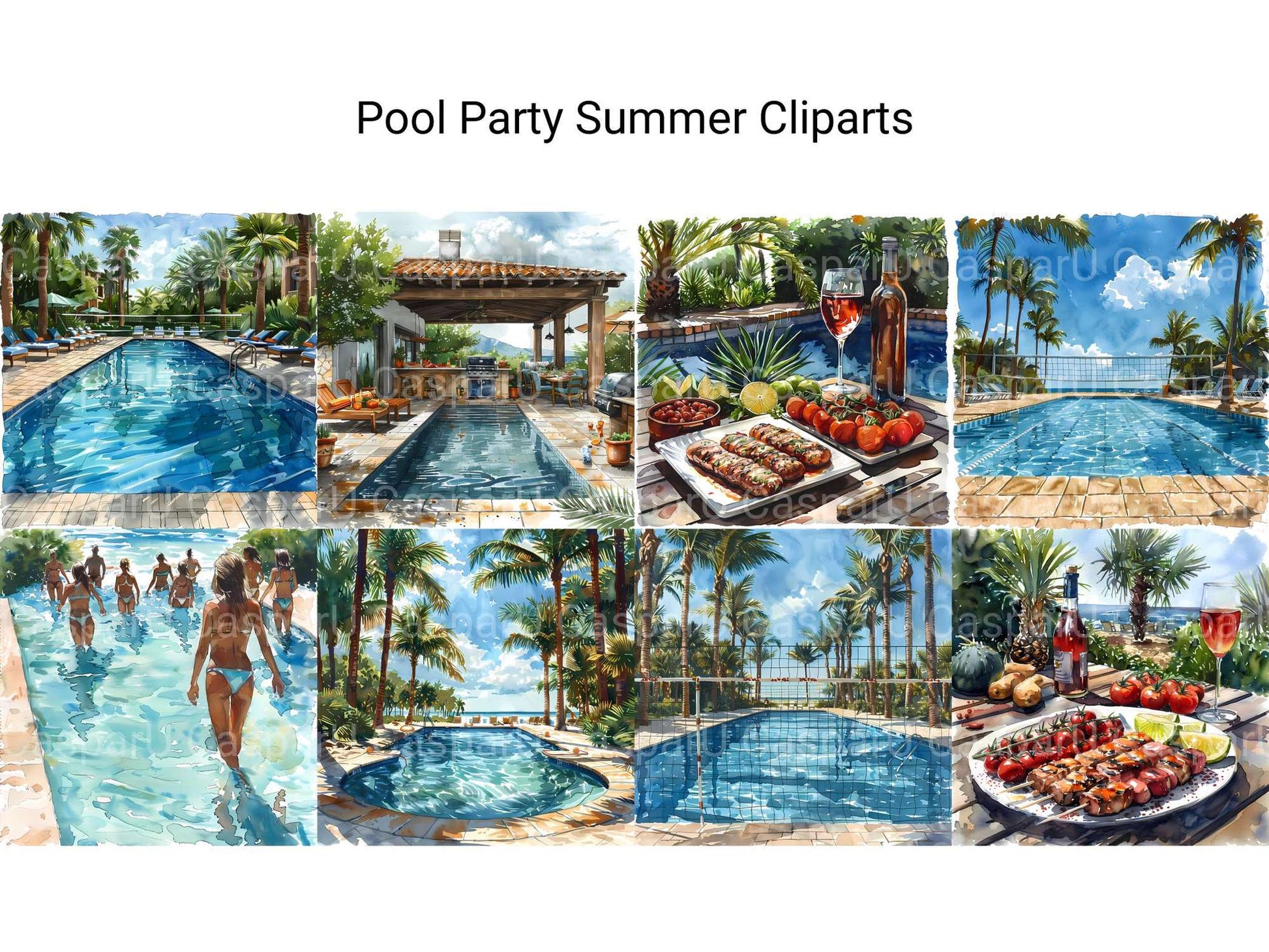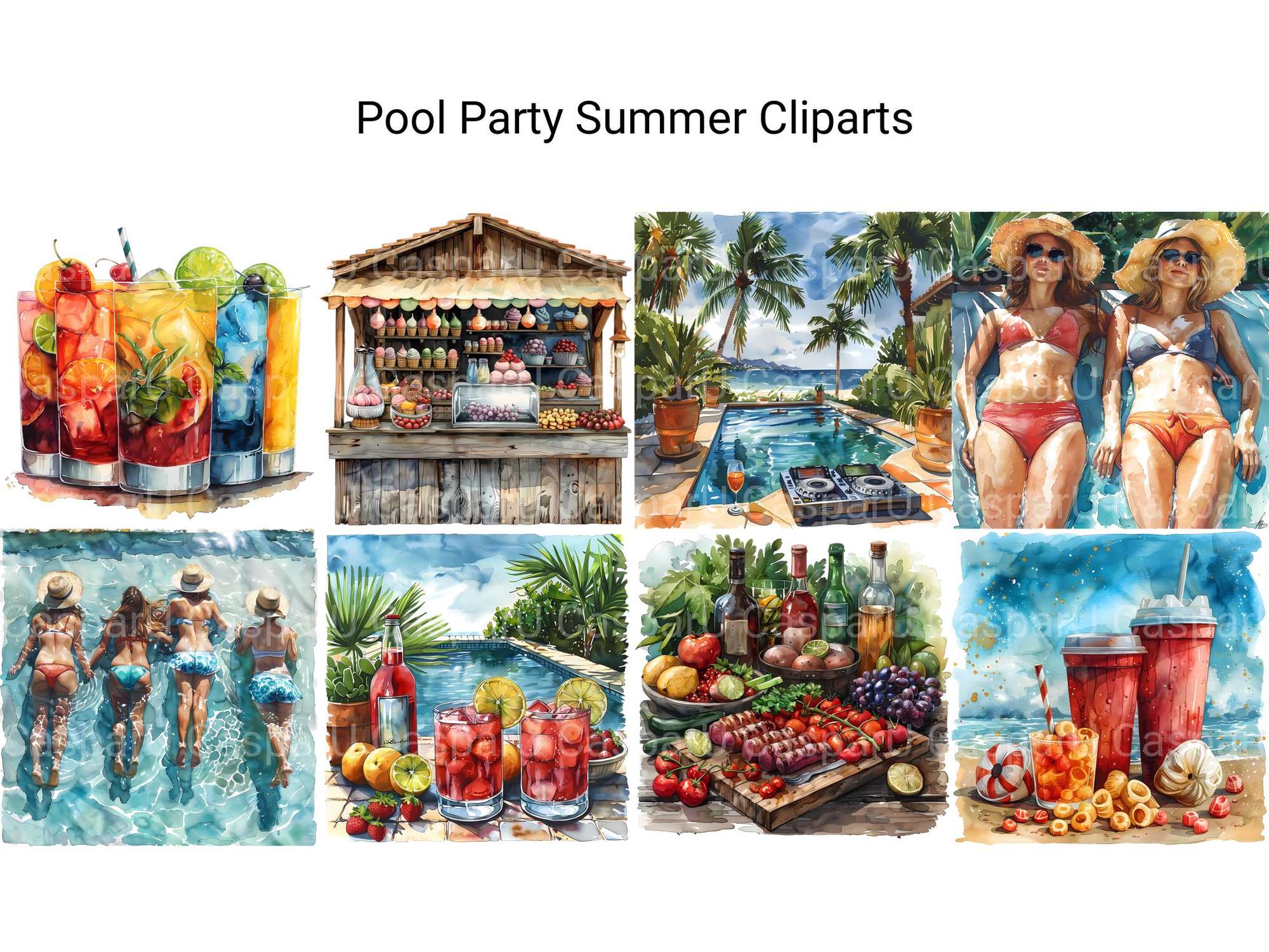 Dive into the fun with our Pool Party Summer clipart, featuring lively illustrations of pool floats, swimwear, and refreshing drinks. These designs capture the excitement and joy of a summer pool party, perfect for adding a splash of fun to your projects.