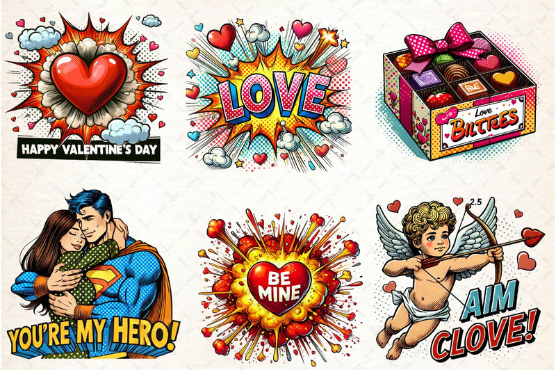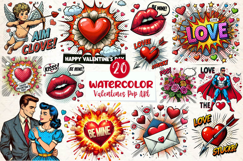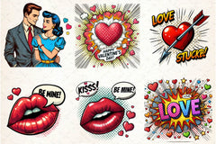 Pop with this Pop Art Valentines Day Clipart Bundle, featuring retro love designs, perfect for artistic Valentine's crafts.