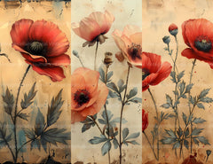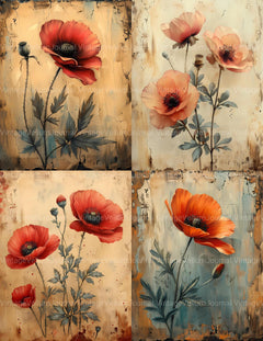 Poppies Flowers Junk Journal Pages