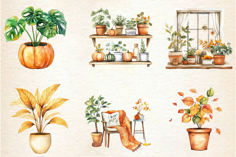 Grow with this Positive Autumn Houseplant Clipart Bundle, featuring uplifting indoor plant designs, perfect for home garden crafts.