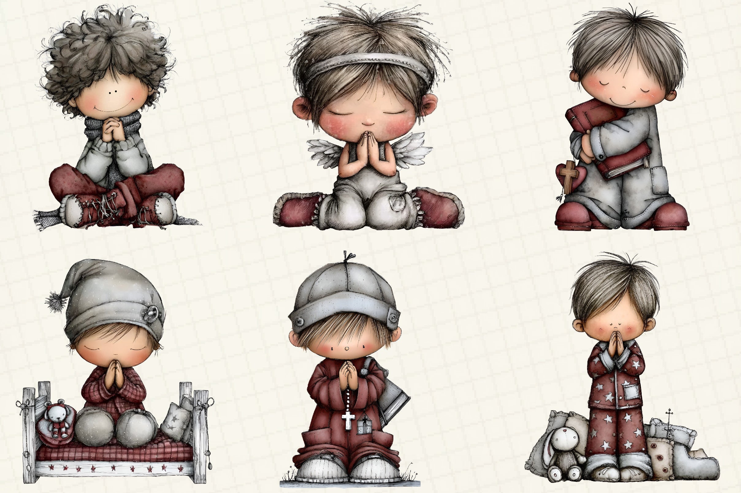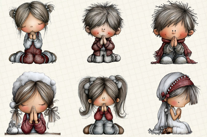 Praying Kids Clipart Bundle