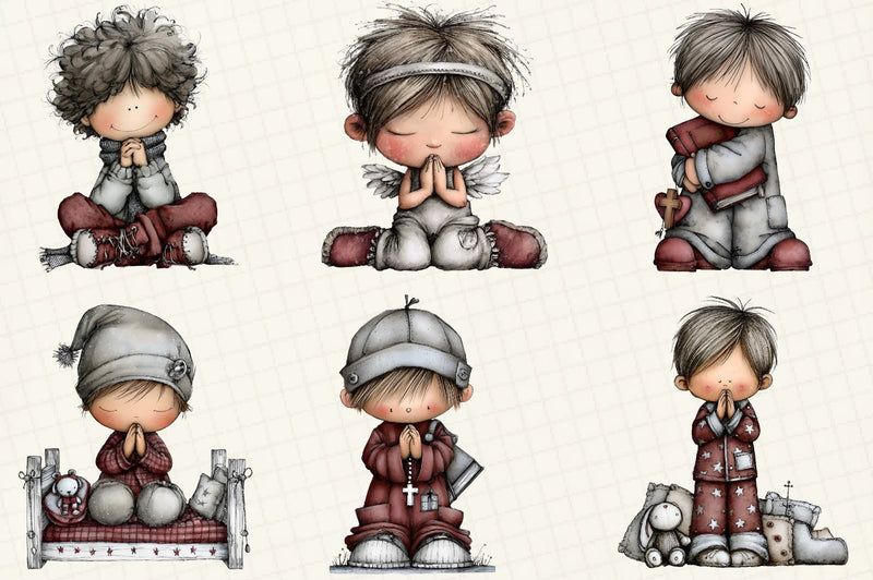 Discover the Praying Kids Clipart Bundle, a heartwarming collection of charming illustrations perfect for faith-based projects. Ideal for Sunday school crafts, religious invitations, and spiritual scrapbooking, these delightful designs bring a touch of devotion to any creation. Elevate your creative projects with these endearing, high-quality clipart images, perfect for adding a spiritual touch to your designs.