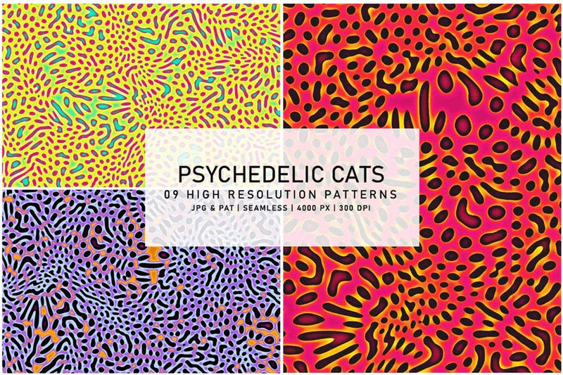 Unleash creativity with Psychedelic Cats - Animal Print, featuring vibrant feline designs perfect for unique art projects and home decor. Ideal for cat lovers and art enthusiasts seeking a colorful twist.