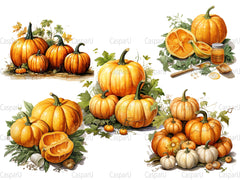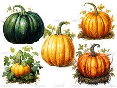 Celebrate the bounty of the harvest with our Pumpkin Varieties clip art. These vibrant digital illustrations feature a variety of pumpkins, from traditional Jack O'Lanterns to colorful gourds, perfect for adding a touch of seasonal warmth and autumnal charm to your designs, whether for fall decorations, Thanksgiving artwork, or harvest-themed projects, capturing the rustic beauty of pumpkins in delightful detail.