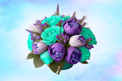 Vibrant purple and turquoise flower bouquets for colorful projects.