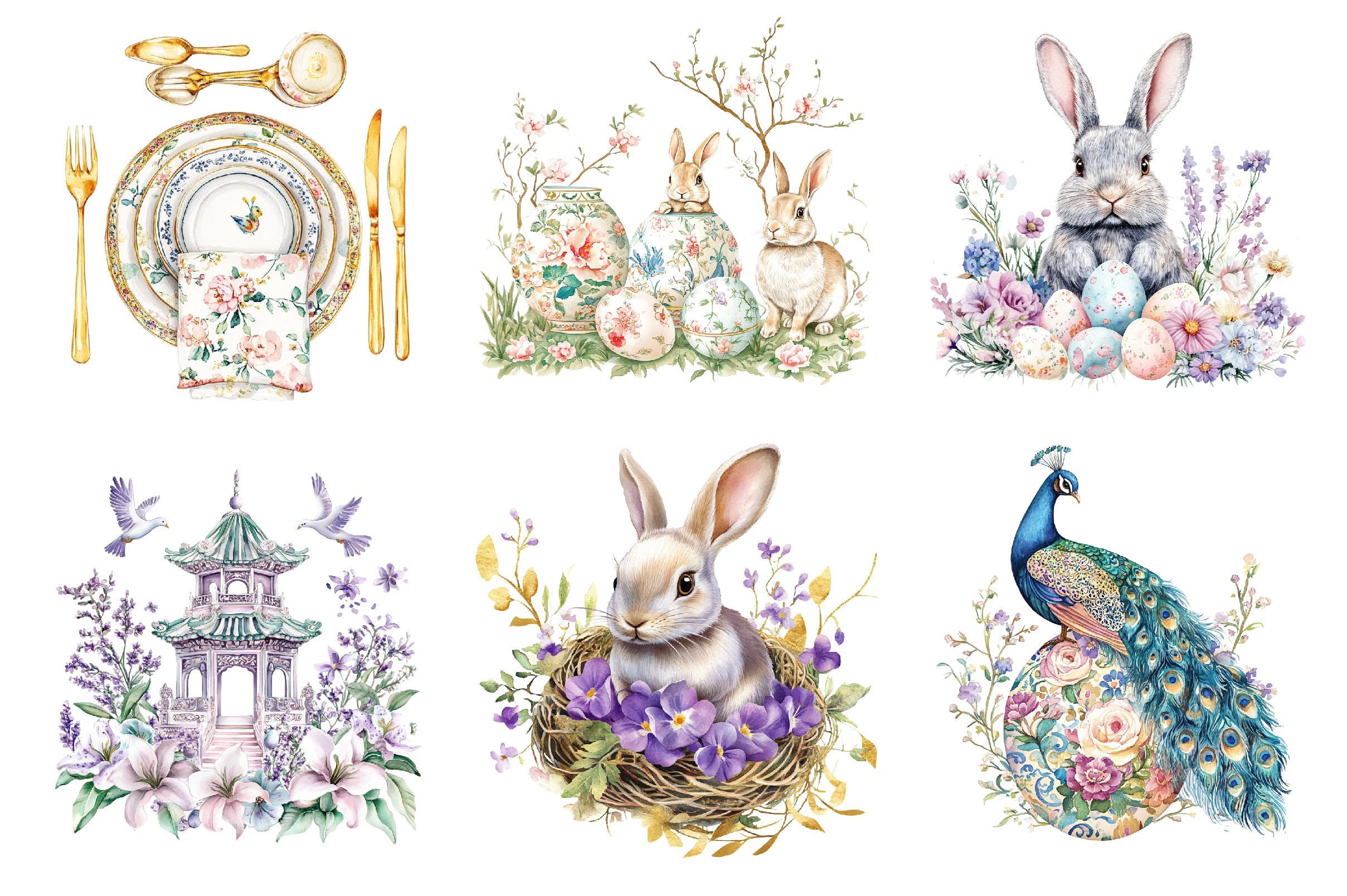 Purple Chinoiserie Easter Clipart Bundle