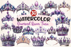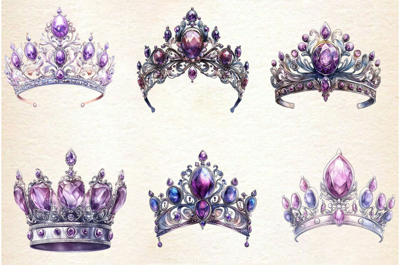 Crown with this Purple Diamond Queen Tiara Clipart Bundle, featuring royal headpiece designs, perfect for princess fashion crafts.