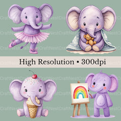 Purple Elephants Clipart Bundle