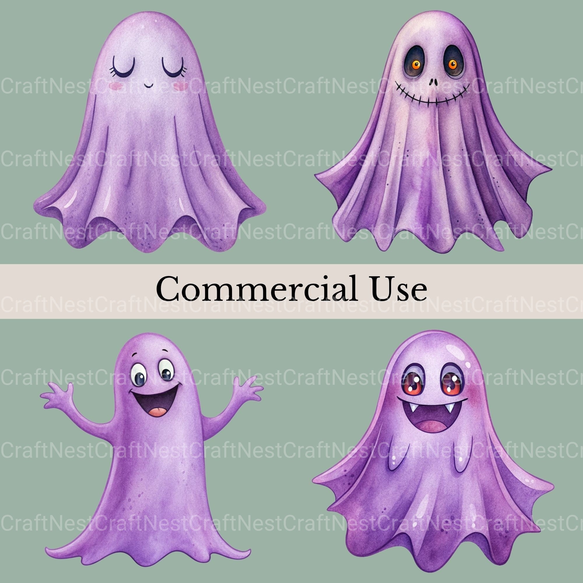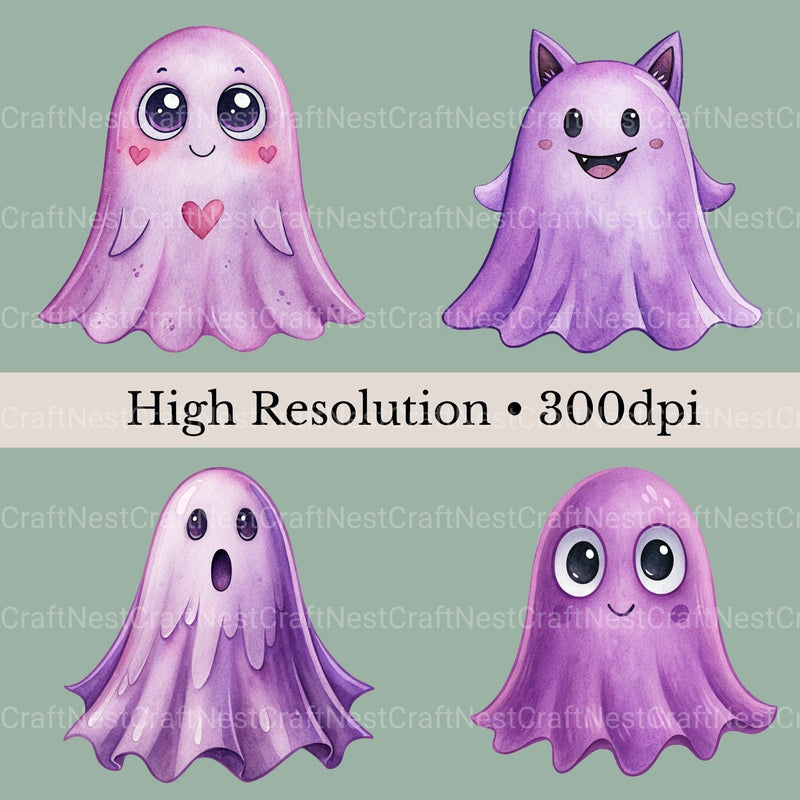 Purple Ghosts Clipart Bundle