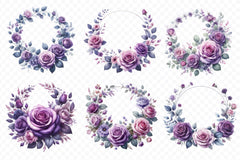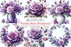 Purple Rose Bouquets Clipart Bundle