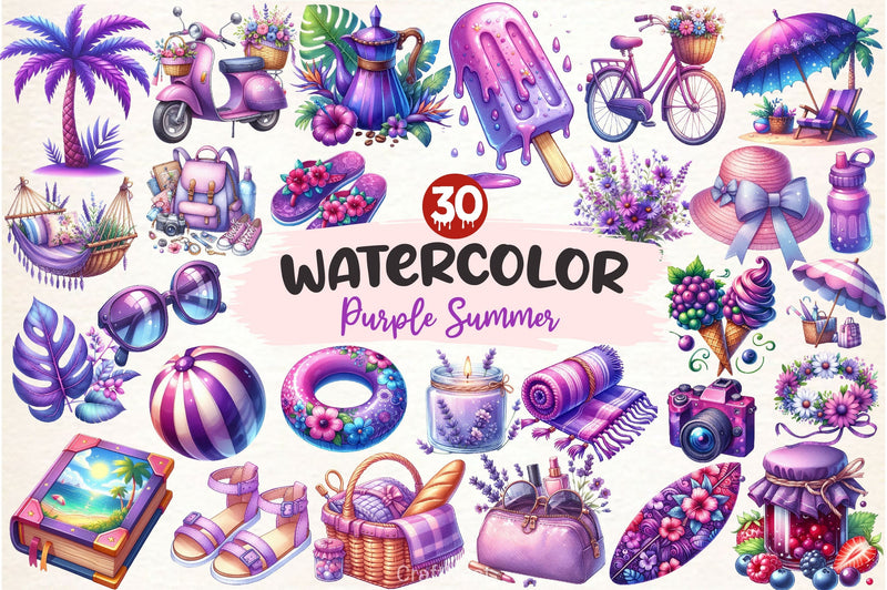 Purple Summer Clipart Bundle 4