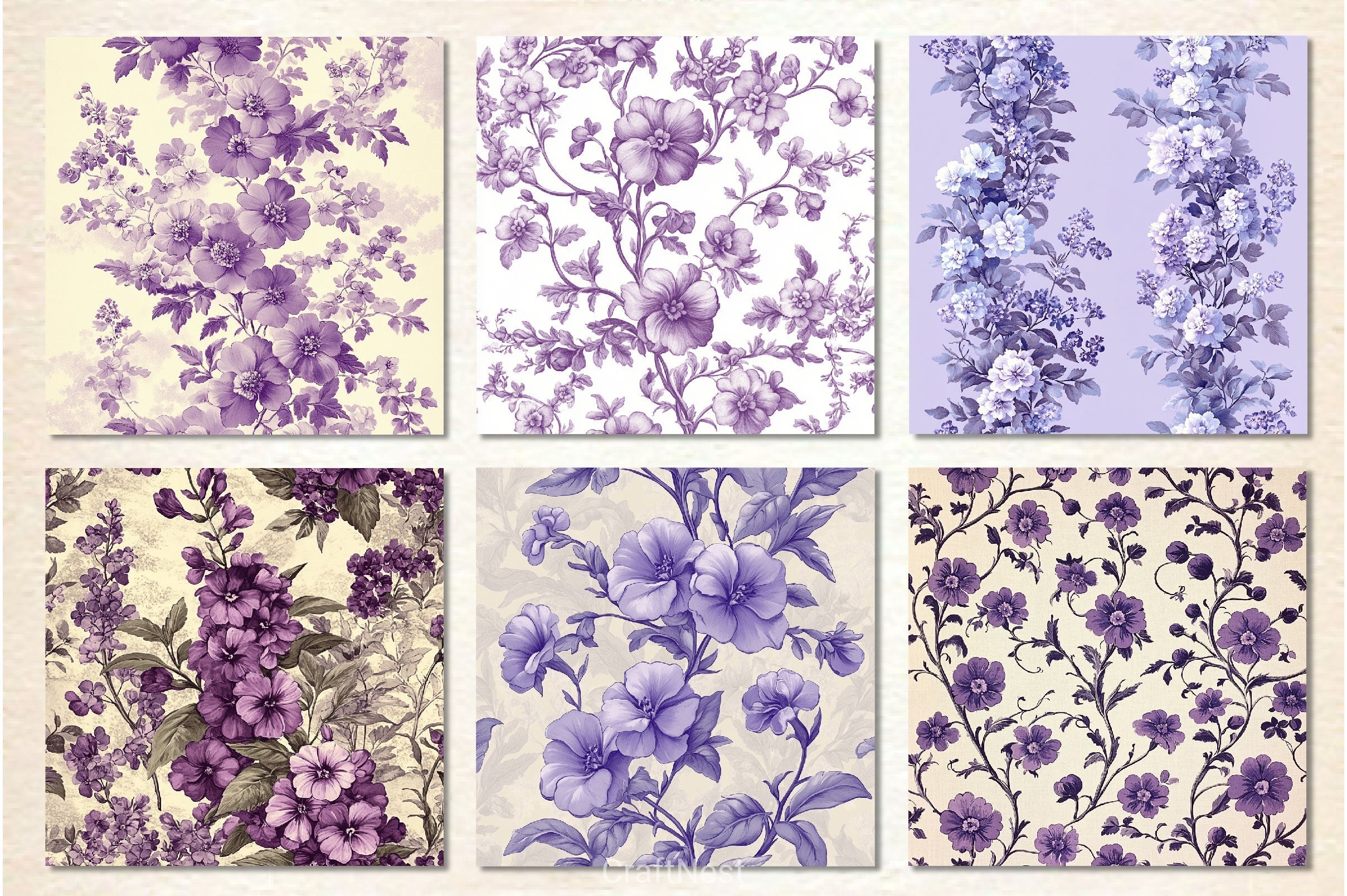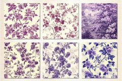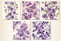 Elegant purple toile creeping phlox flower digital papers perfect for spring and floral crafting projects.