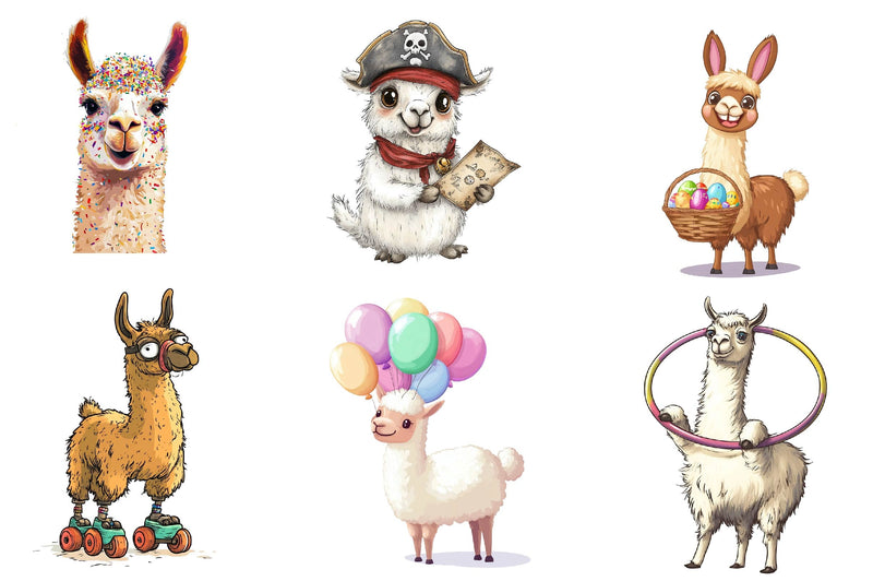 Laugh with this Quirky Funny Llama Clipart Bundle, featuring humorous llama designs, ideal for playful animal crafts.