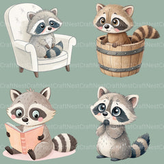 Bandit with this Raccoons 1 12 Clipart Bundle, featuring mischievous raccoon designs, perfect for woodland animal crafts.
