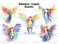Experience a spectrum of celestial beauty with our Rainbow Angels clip art. These vibrant digital illustrations feature angels adorned with rainbow wings, surrounded by colorful halos and shimmering stars, perfect for adding a burst of color and positivity to your designs, whether for LGBTQ+ pride, children's artwork, or celestial-themed projects, embodying the joy and diversity of rainbow-inspired angelic grace.