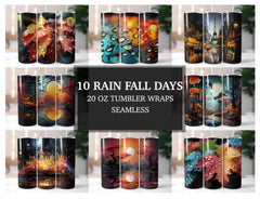 Embrace the cozy ambiance of Rainy Fall Days with our seamless tumbler wraps. Featuring soothing illustrations of raindrops and autumnal scenes, these wraps capture the tranquility of rainy days. Whether you enjoy the patter of rain on the window or the smell of wet earth, let these wraps accompany you on your rainy day adventures and bring a touch of warmth and comfort to your tumbler.