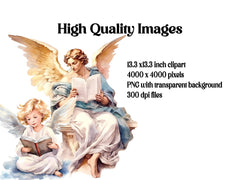 Cultivate a love for literature with our Reading Angels clip art. These charming digital illustrations depict angels lost in the magic of books, surrounded by piles of books, cozy reading nooks, and whimsical literary scenes, perfect for inspiring imagination and encouraging literacy in children's books, educational materials, or library promotions, celebrating the enchantment of reading and the joy of angelic companionship.