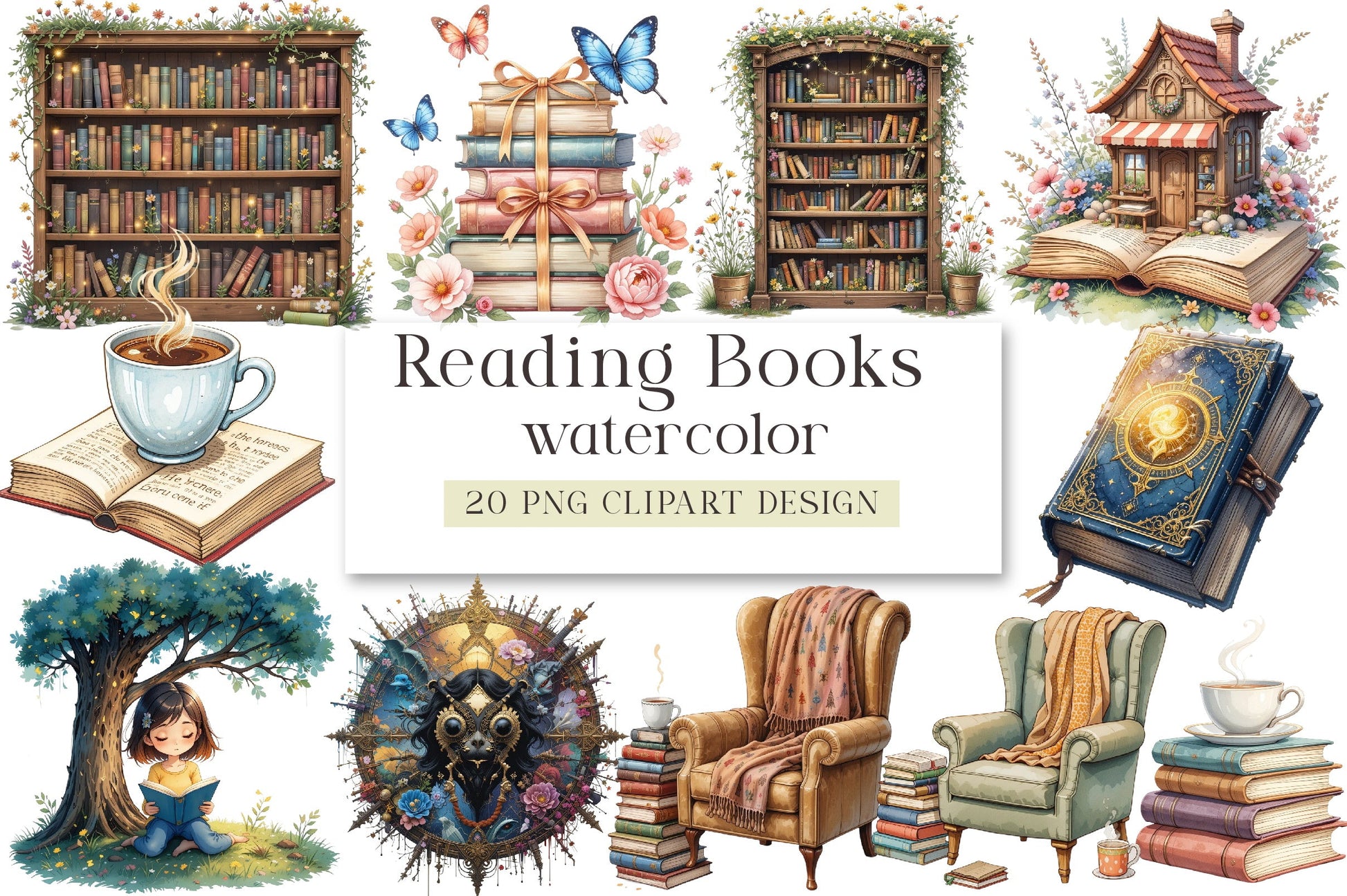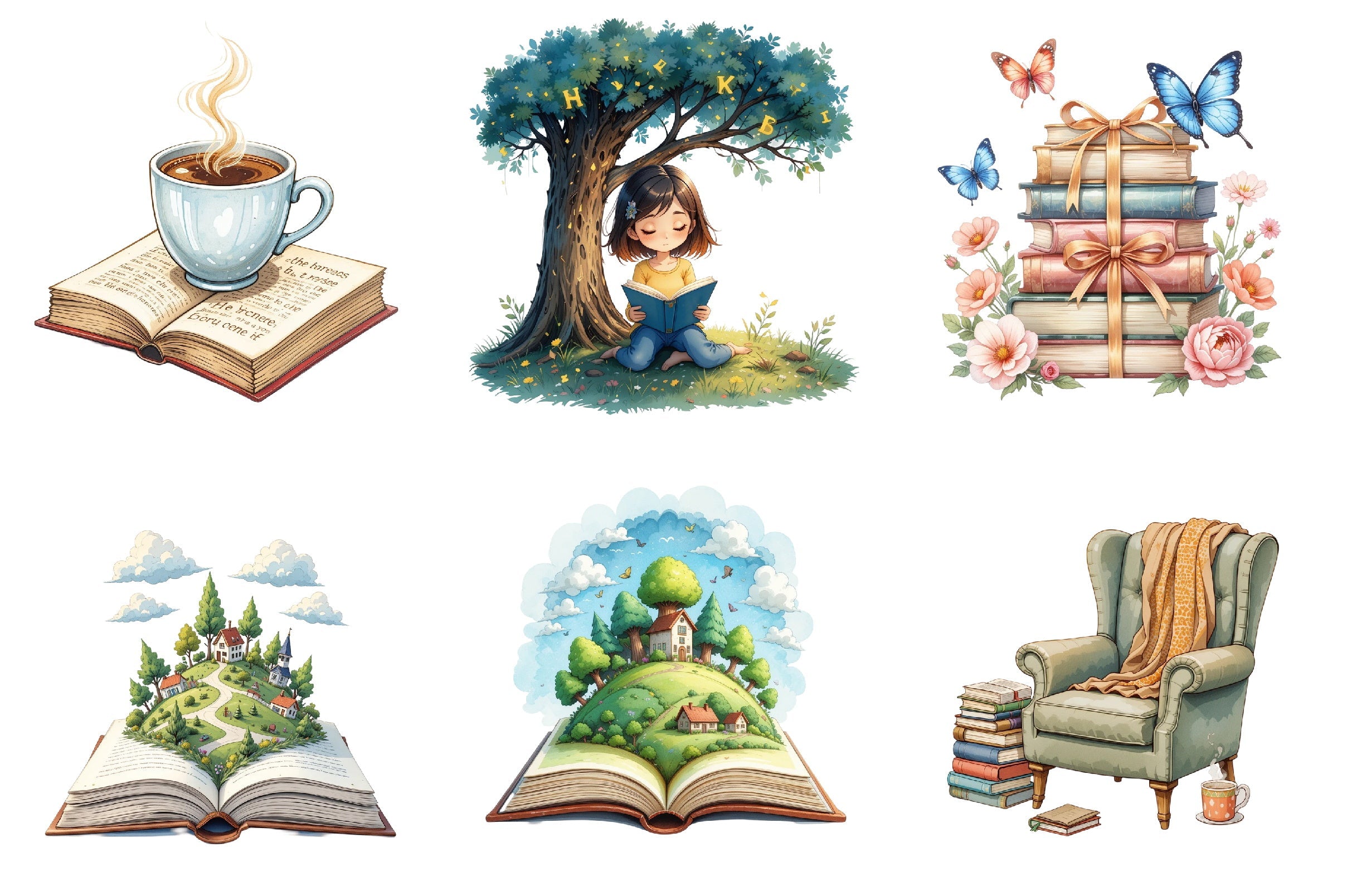 Transform your projects with our Reading Books Clipart Bundle, featuring an enchanting assortment of book-related illustrations, ideal for creating engaging educational content and imaginative crafts.