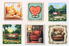 Read with this Reading Books Postage Stamp Clipart Bundle, featuring literary postal designs, perfect for educational travel crafts.