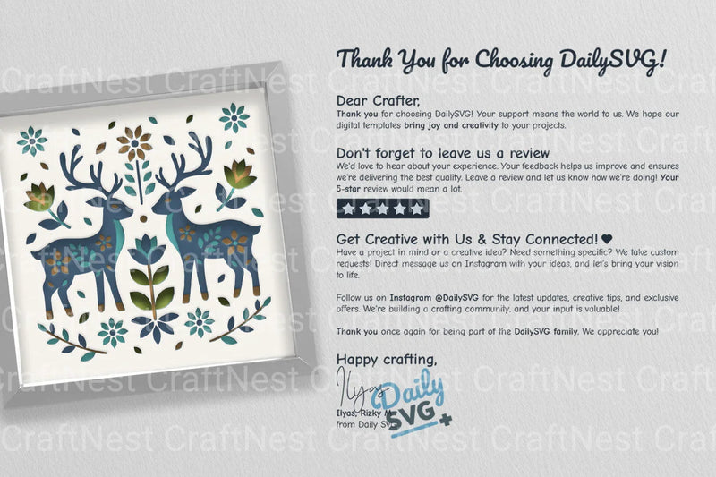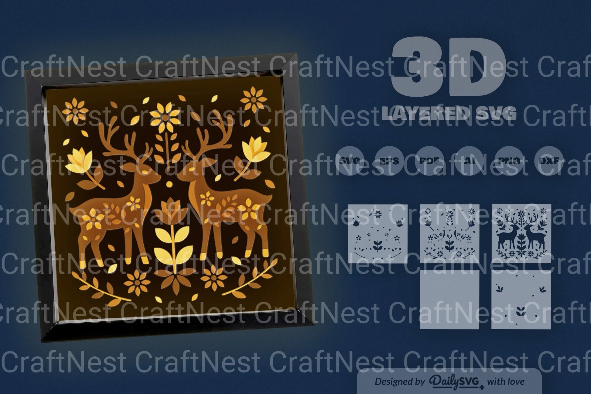 Discover the charm of the Reindeer Folk Art Papercut Shadow Box SVG Bundle, featuring intricate reindeer designs perfect for festive home decor and holiday crafts. Elevate your seasonal projects with these unique, easy-to-use SVG files, ideal for creating stunning shadow boxes and papercut art.