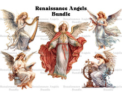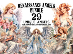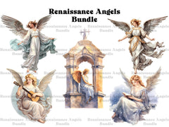 Journey back to the splendor of the Renaissance era with our Renaissance Angels clip art. These majestic digital illustrations portray angels in classic Renaissance style, with flowing robes, intricate details, and serene expressions, perfect for adding a touch of timeless beauty and artistic refinement to your designs, whether for historical artwork, cultural events, or themed decor, embodying the enduring allure of Renaissance-inspired angelic grace.