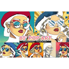 Add vibrant flair with this Retro 80s Pop Art Girls Clipart, perfect for comic-style crafts.