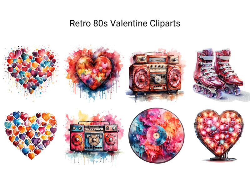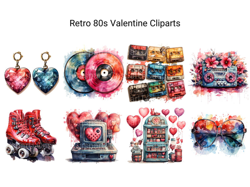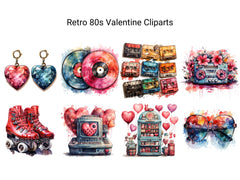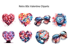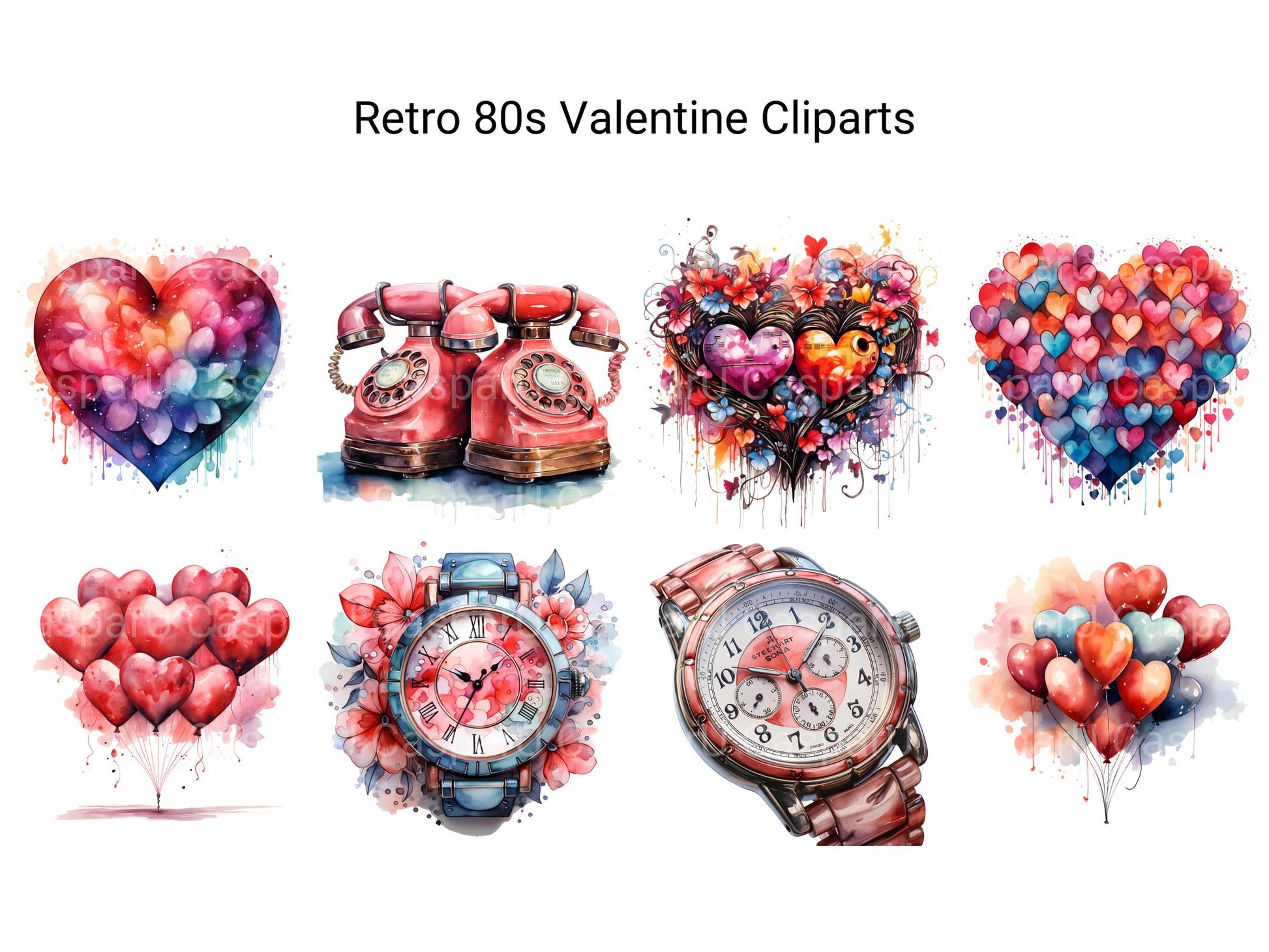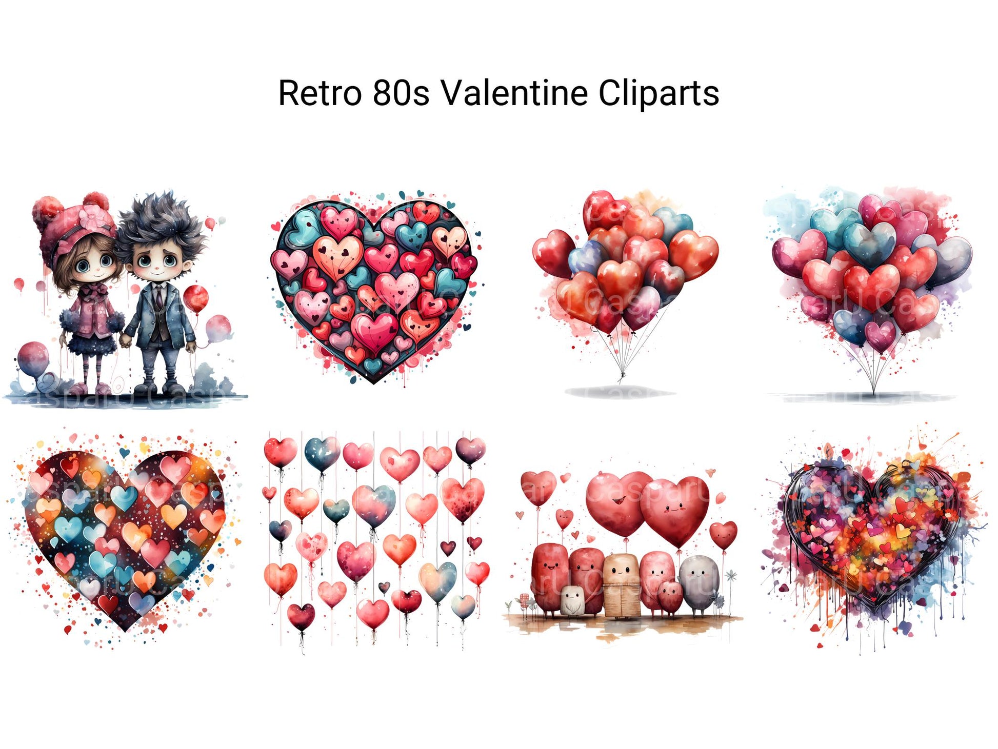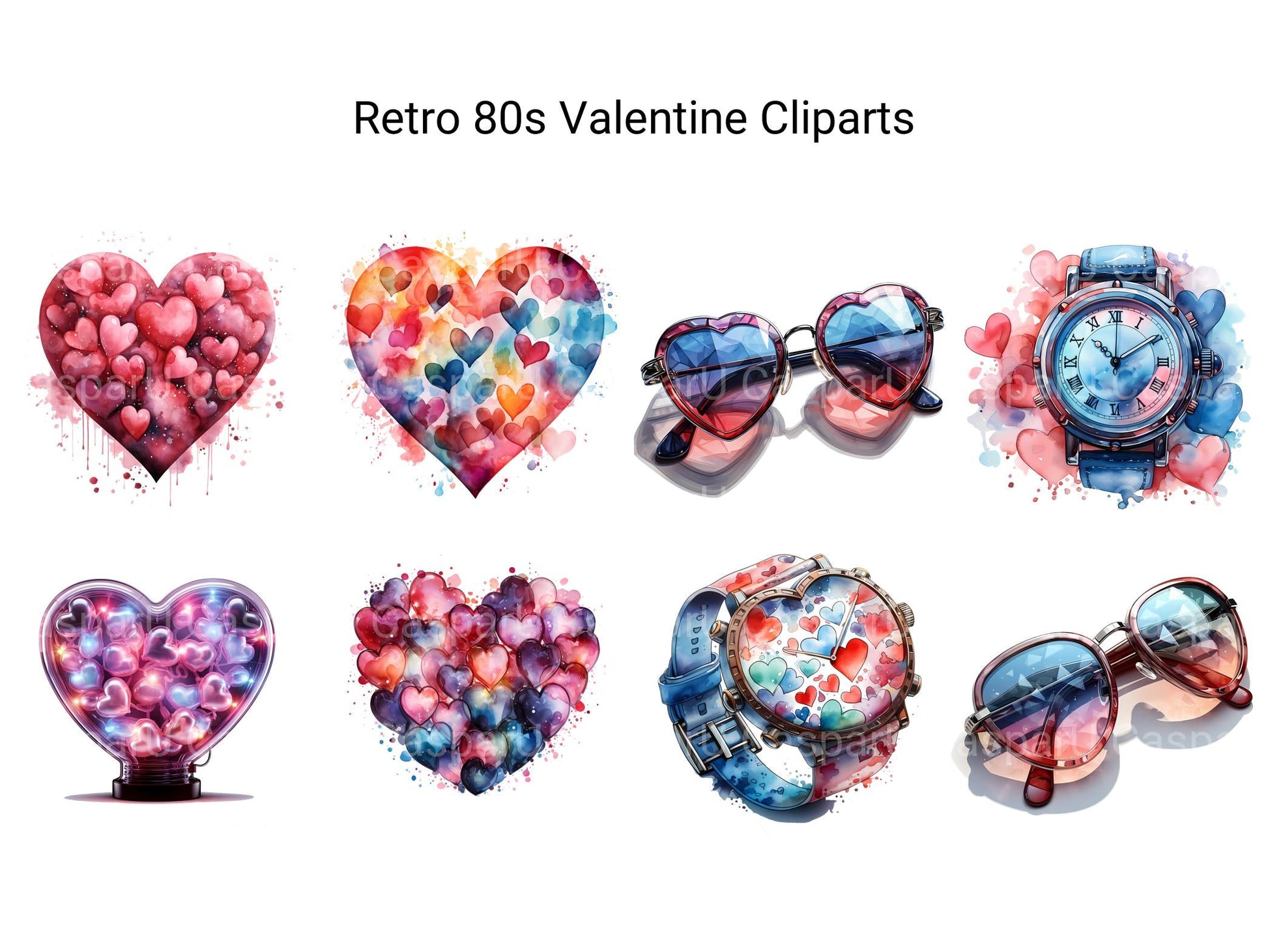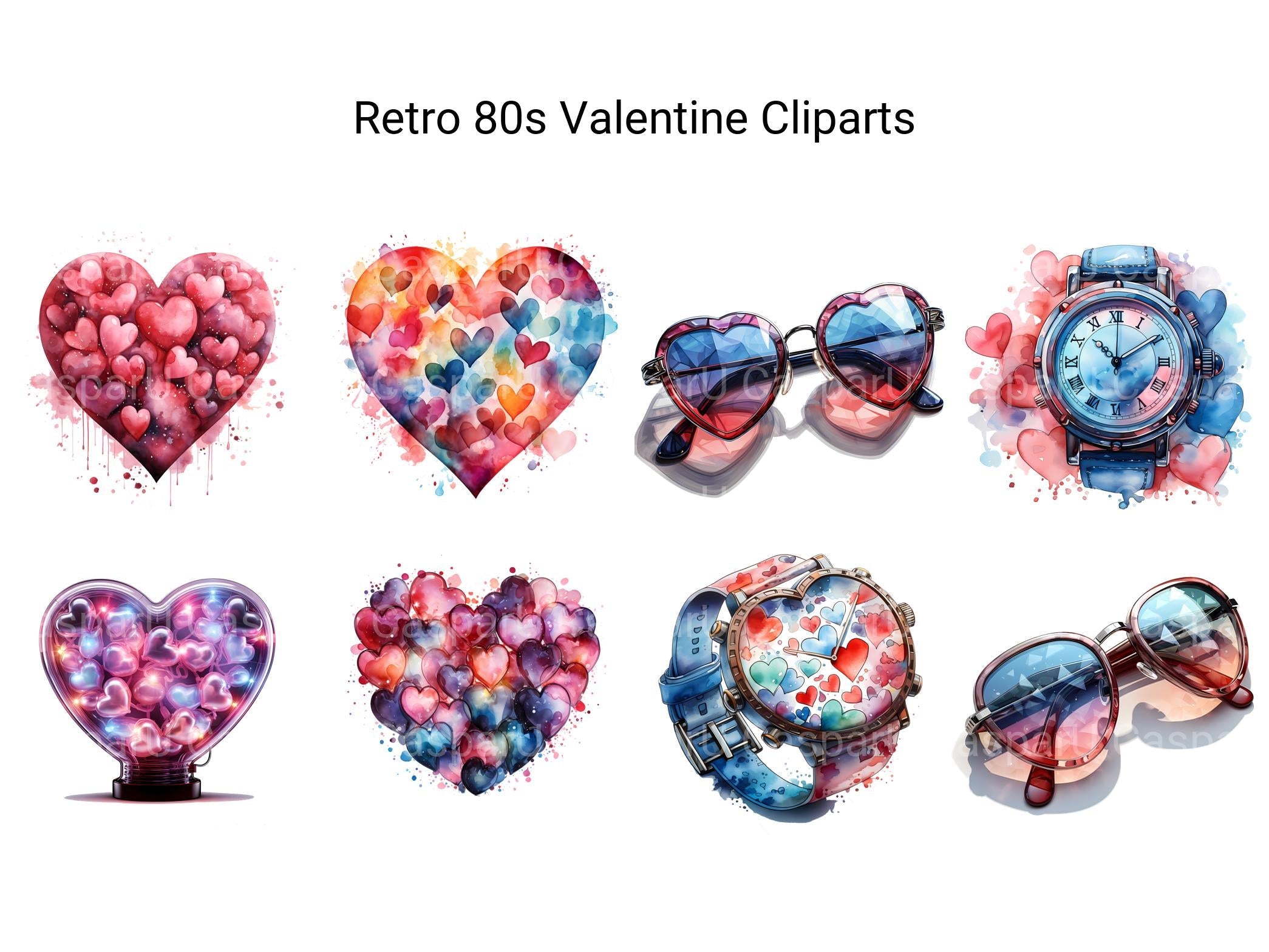 Relive the nostalgia of the 80s with digital clip art featuring retro-inspired Valentine's Day illustrations. From neon colors to iconic motifs, these vibrant images capture the spirit of the decade, perfect for adding a fun and funky twist to your Valentine's Day projects. Let the groovy vibes of the 80s infuse your celebrations with retro flair, inviting viewers to dance to the rhythm of love in true '80s style.