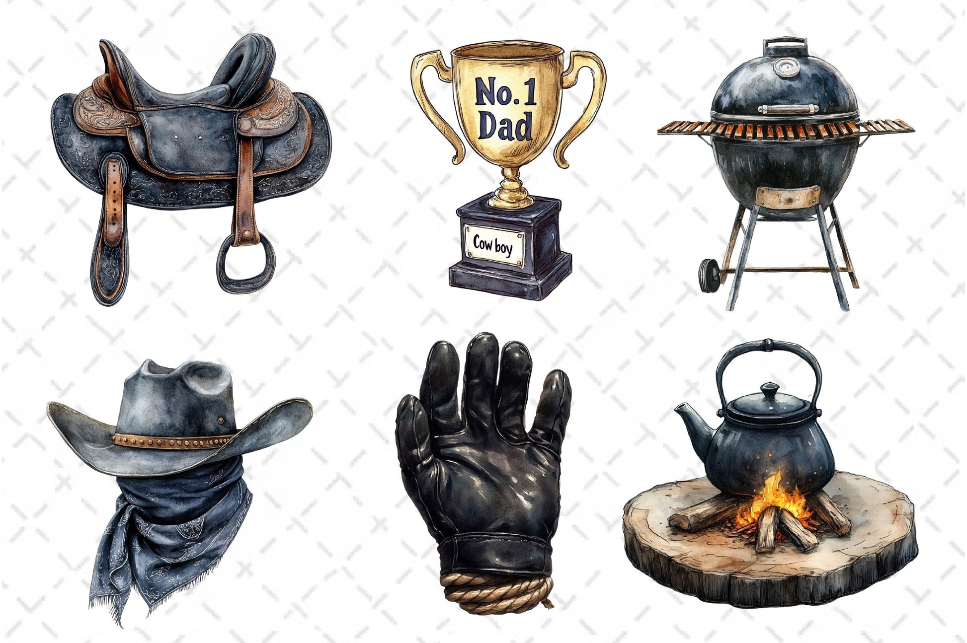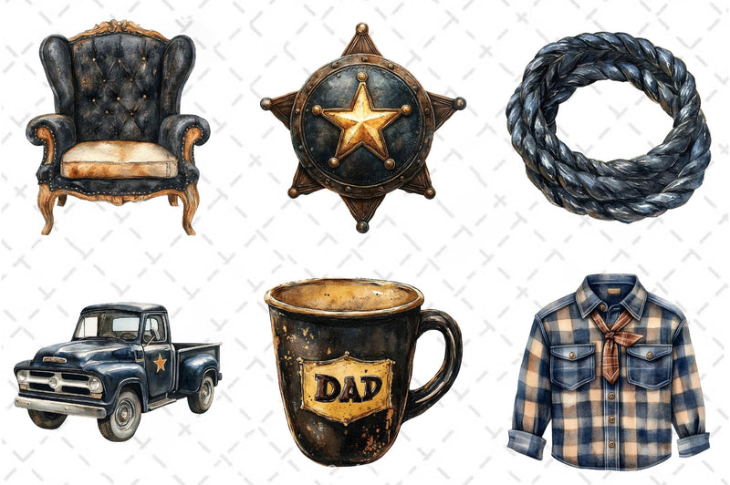 Retro Cowboy Dad Clipart Bundle