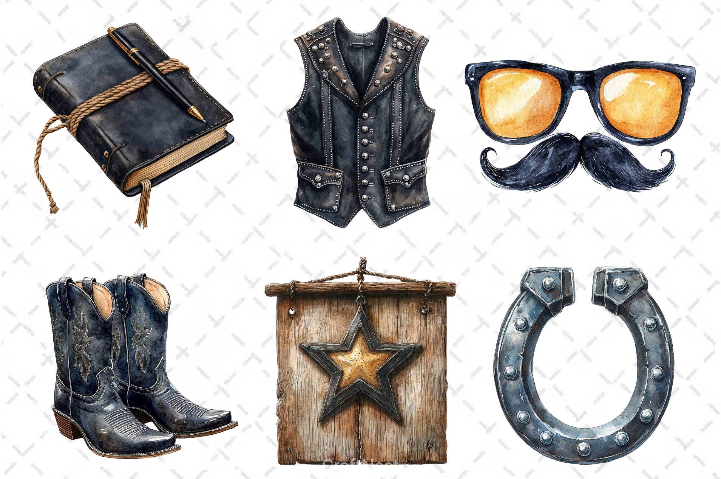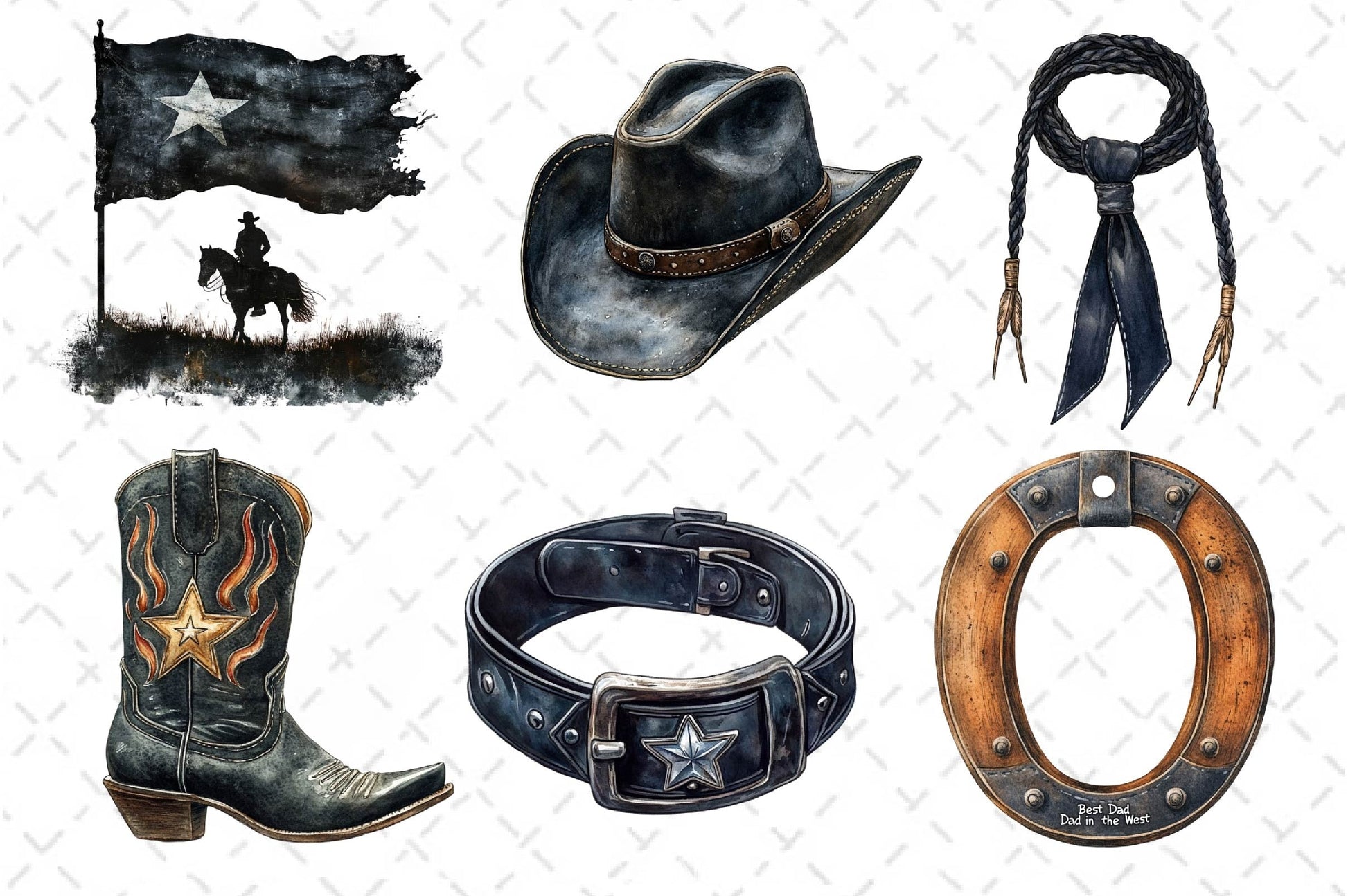 Ride with this Retro Cowboy Dad Clipart Bundle, featuring father western designs, perfect for vintage family crafts.