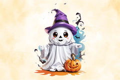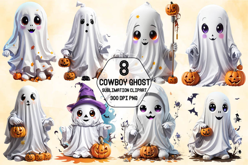 Haunt with this Retro Cowboy Ghost Clipart Bundle, featuring western ghost designs, ideal for vintage Halloween crafts.