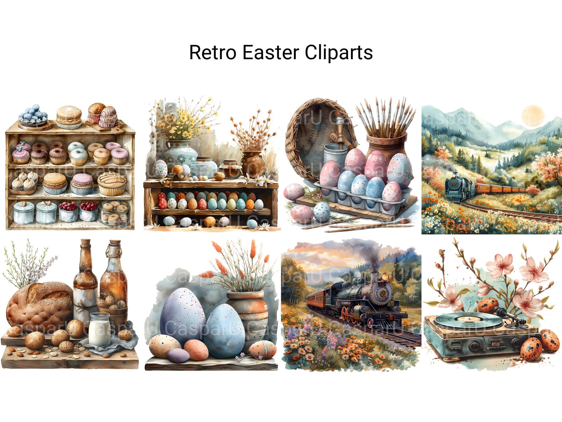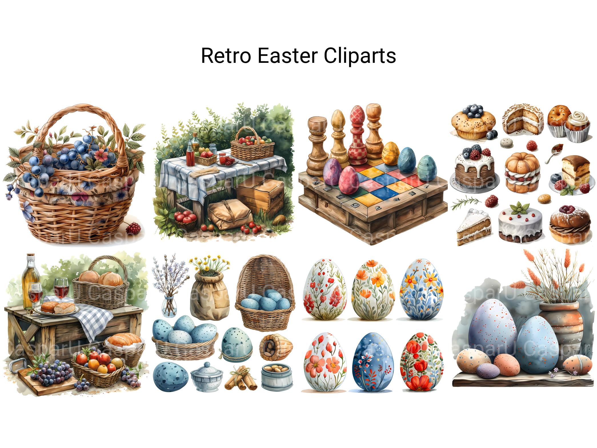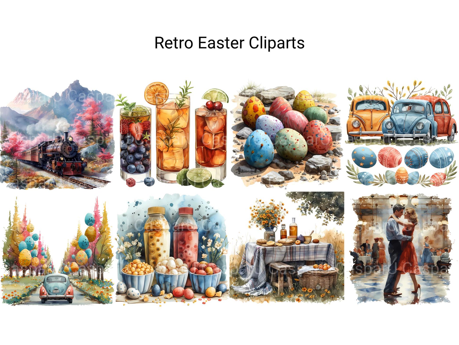 Relive the glory days of the past with Retro Easter digital clip art, featuring retro-inspired illustrations, bold graphics, and vibrant colors that capture the nostalgia of yesteryear. These retro-chic images infuse Easter with a vintage vibe and retro charm, perfect for adding a dose of nostalgia to your projects. Let Retro Easter take you on a journey back in time, inviting viewers to embrace the timeless appeal of retro style and celebrate Easter in retro-chic fashion.