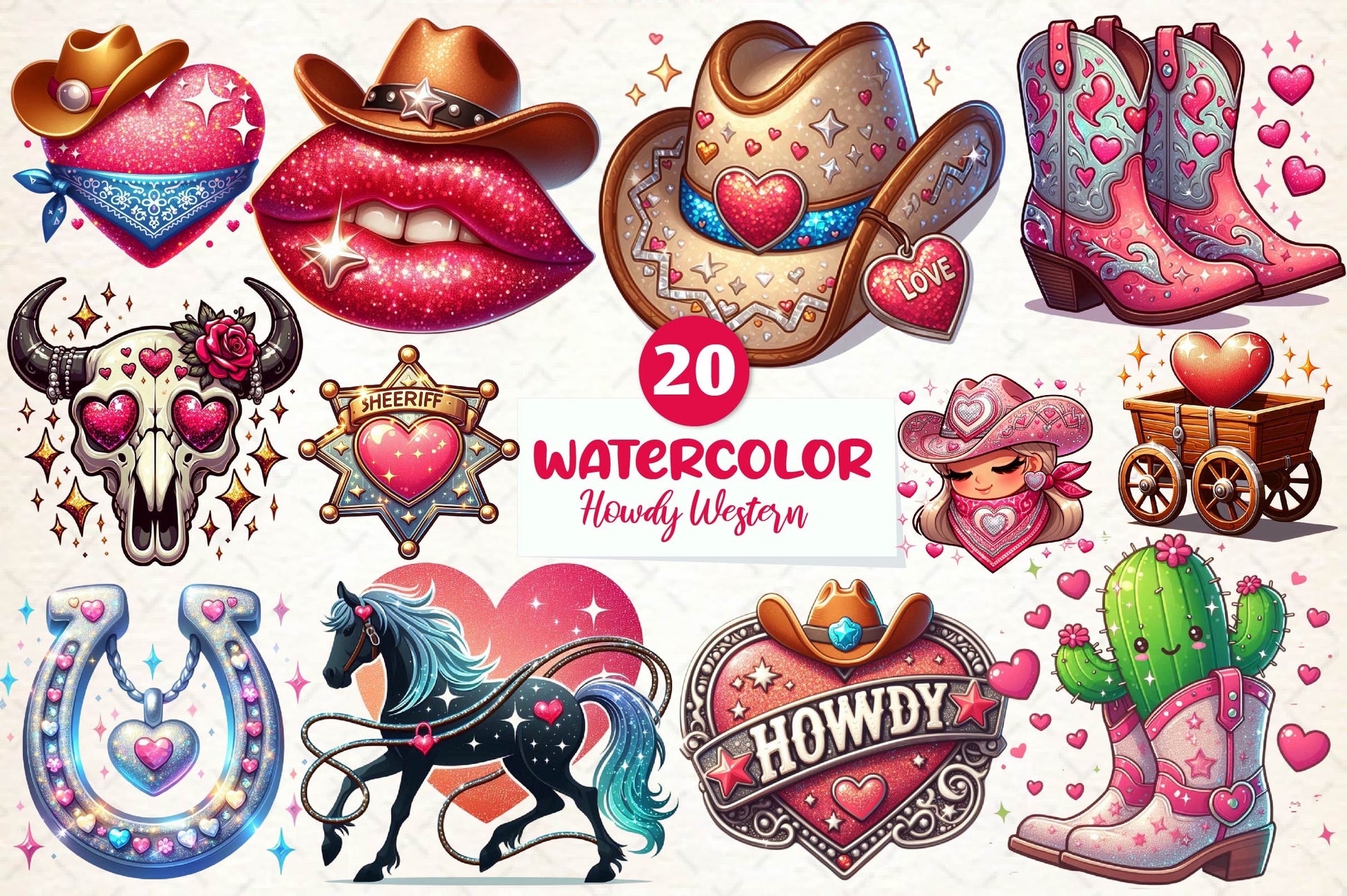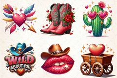 Ride with this Retro Howdy Western Valentine's Day Clipart Bundle, featuring cowboy love designs, perfect for western Valentine's crafts.