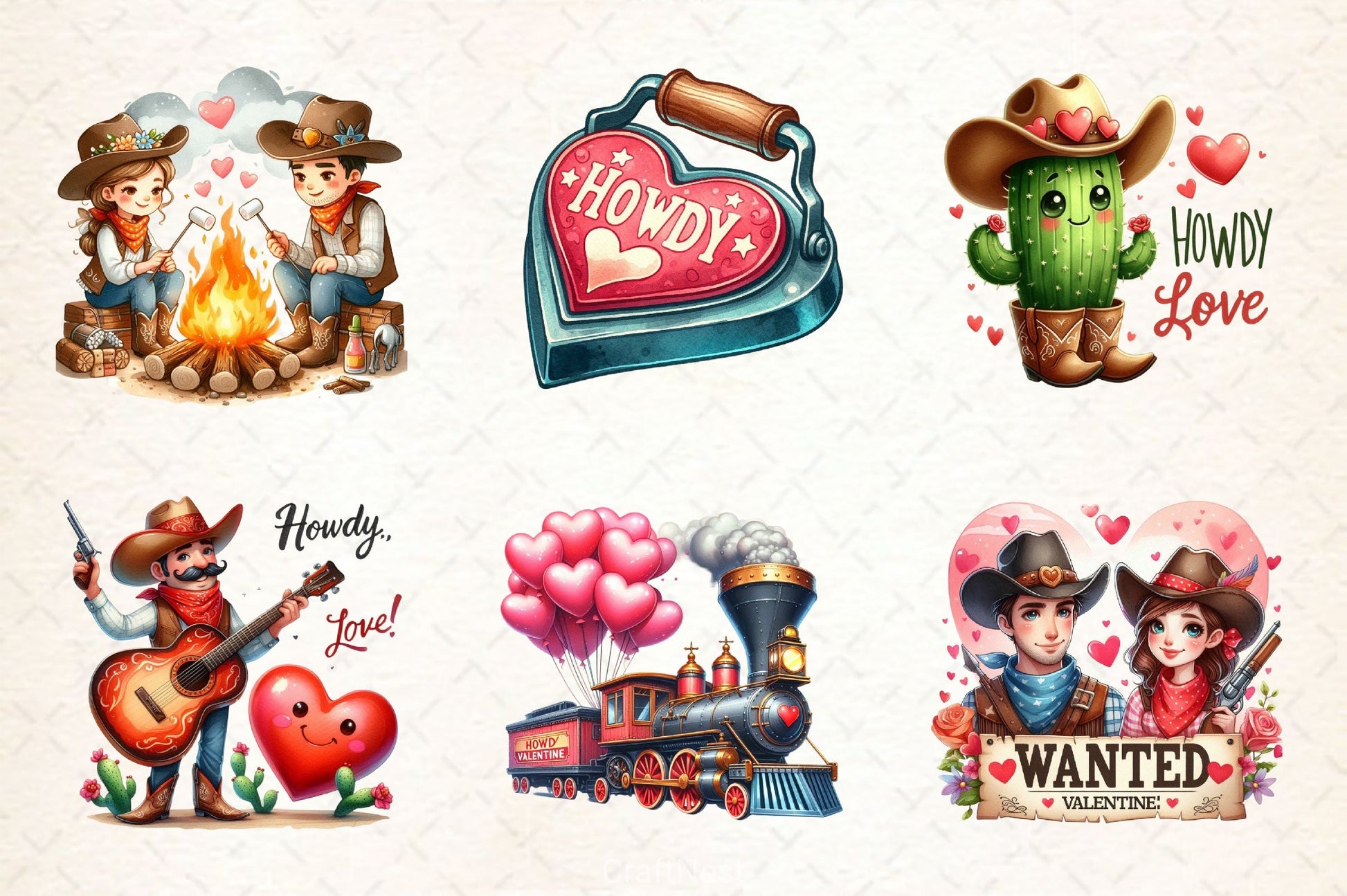 Partner with this Retro Howdy Western Valentines Day Clipart Bundle, featuring cowboy romance designs, perfect for frontier love crafts.
